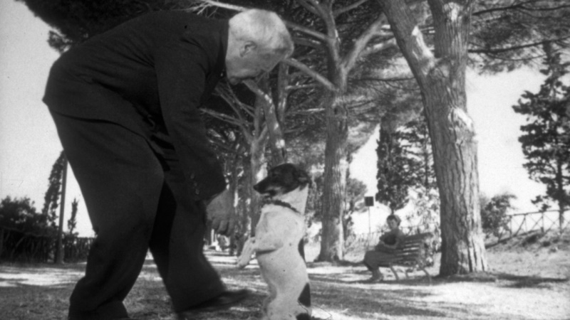 Umberto D. was the fourth film made in the post-war period by the partnership of De Sica and screenwriter Cesare Zavattini. Their previous effort, Bicycle Thieves, was rightly acclaimed as an immediate classic. A heartbreaking, Oscar-winning giant of world cinema, it is arguably the pinnacle of the neo-realism genre that the duo were key proponents of. But, unlike their other films, Umberto D. explores Italy’s poverty and hardship not from the point of view of the working class (such as Maria) but from its middle-class, educated central protagonist. Despite falling on hard times, Umberto is shown – to an almost unsympathetic degree – to refuse almost all confrontation of the severity of his situation. The decline of respectability is something he steadfastly ignores, as he is determined to keep up appearances at all costs. This is perhaps best exemplified by one of the film’s most famous scenes in which Umberto attempts to beg for spare change in the streets. In a tragicomic sequence of Chaplinesque proportions, this fussy little old man painfully weighs up his options, timidly thrusting out his hand towards passing commuters. When one Good Samaritan stops to rifle through his pockets, Umberto panics at the thought of what he must look like and flips his hand over, gazing up at the sky at some elusive spots of rain. Snatching defeat from the jaws of victory, he shies away from the ignominy by removing his hat and placing it in Flike’s jaw – the dutiful dog taking his spot and appealing for change as he hides behind a nearby pillar. When the loyal terrier is spotted begging on his hind legs with the proffered hat between his teeth by someone Umberto respects, the old man gives up his hiding place and chides the dog for his wayward playful spirit.
