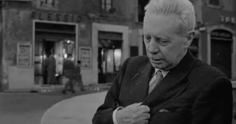 Cast in the titular role of Umberto Domenico Ferrari (to give him his full title) is the non-professional actor Carlo Battisti, a seventy-year-old Florentine professor of linguistic science. We are introduced to this small fussy looking man in a crowd scene that skilfully addresses the film’s issue from the off; a group of elderly protesters demanding a state pension on which they can adequately live. If audiences are still unclear as to how economically deprived the vulnerable were in post-war Italy, they ought to be left in no doubt by the subsequent scenes which see Umberto eat with a host of pensioners in some kind of subsidised canteen/soup kitchen and, after having been forced to sell his pocket watch, his return home to a less than salubrious, ant-infested accommodation run by a blousy bourgeois landlady, played by Lina Gennari.