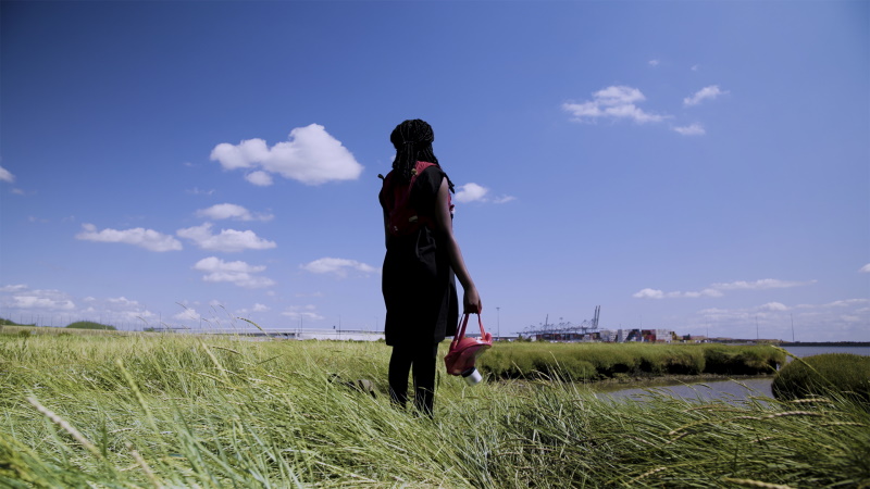Following a nameless Wanderer played by Perside Rodrigues as she treks across the country, Wayfinder fits neatly alongside the psychogeographic cinema of Andrew Kötting and Chris Petit, as well as complementing our current golden age of nature writing – think recent non-fiction bestsellers by Helen MacDonald or Robert MacFarlane. One of the most striking things Achiampong offers that those names can’t is a Black perspective on the landscape. A few literary voices, like Jini Reddy and Tim Hannigan, have questioned the ethnic and economic blind spots of travel and nature writing, but in cinematic terms, the only comparison I can think of is John Akomfrah’s superb short Peripeteia.