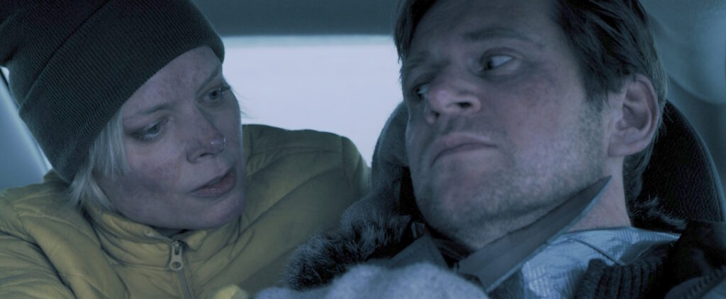 The main protagonists work well together as they duke it out verbally, with some good writing and interesting ideas on display. More flashbacks wouldn’t have gone amiss as they are handled nicely, and as the cold creeps into the car, there’s an inevitability that things won’t end well. Allen Leech plays the role of mild-mannered David well, his ‘everyman’ quality hiding a dangerous inner turmoil. Nina Bergman is striking as Ana but feels somewhat miscast, her capability shining through and taking the role to a slightly different place than I believe was originally intended.