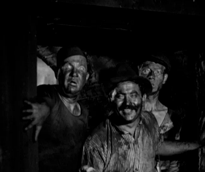 But when the film isn’t placing the viewer in a claustrophobic environment, it puts them in a situation where people are in absolute distress or anger. Outside of the mine, panicked loved ones and townsfolk surround the gates with stationed guards everywhere. And earlier on in the film, Kasper, Wilderer, and Wittkopp attend a dance hall a night before the disaster in hopes of getting drunk off their high horse. One of them asks Francoise, a young French woman, for a dance but is ultimately turned down. Feeling total rejection because of his nationality, the miner almost starts a brawl between the woman’s boyfriend and his friends, when in reality, she was just tired and wasn’t in the mood for a dance. It’s a simple misunderstanding that is taken out of proportion.